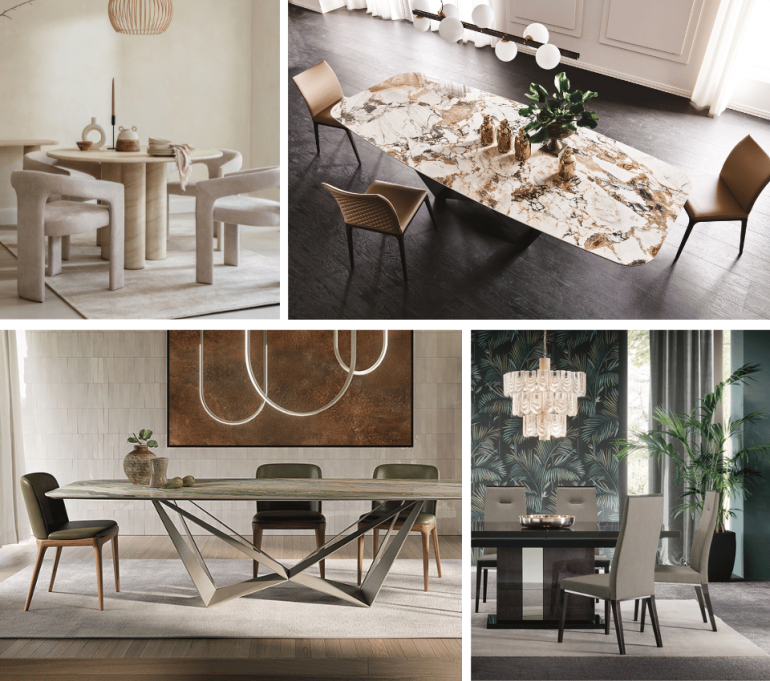 Tip: Don’t be afraid to mix textures and patterns. A classic colour scheme can be spiced up with patterned table runners or upholstered dining chairs.
