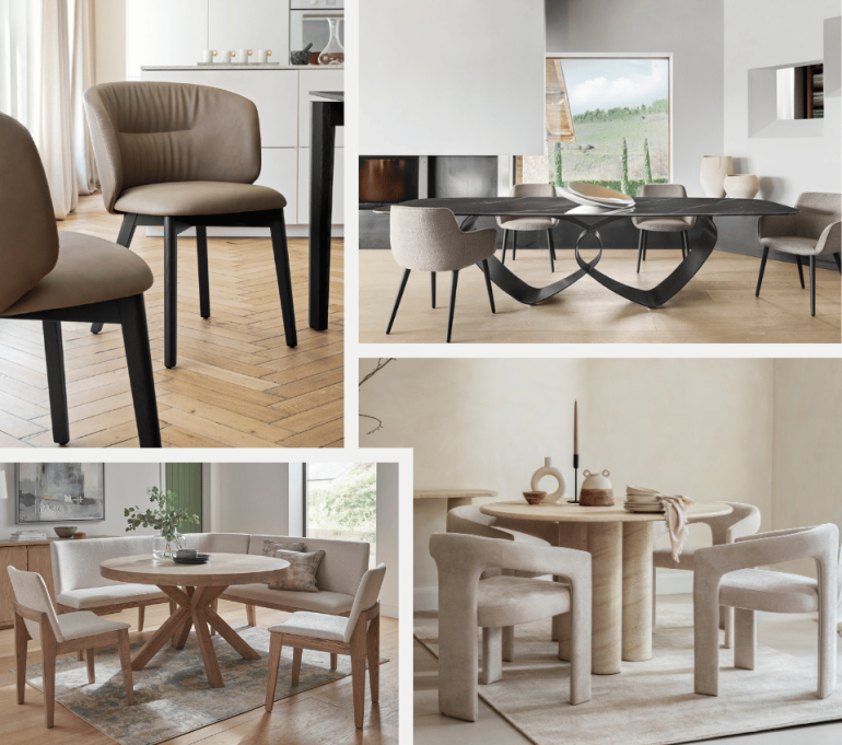 Chairs: Pair your dining table with curvaceous chairs that offer both comfort and style. Look for upholstered options with rounded backs that provide a cosy atmosphere and ensure guests feel welcomed.