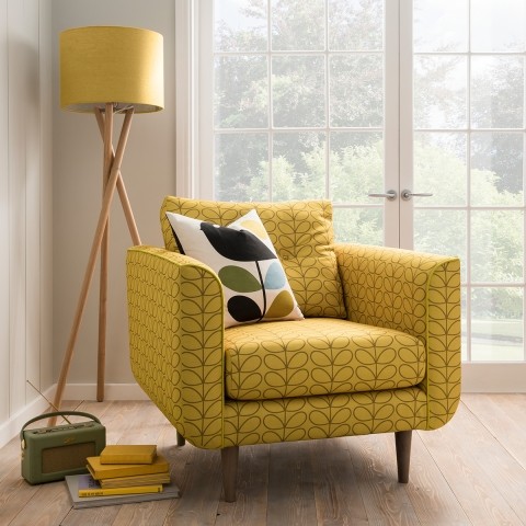 Orla Kiely Upholstery is hand-made in the UK by skilled craftspeople. The internal frames are made from hard wood, sourced from sustainable forests. They are pinned, screwed and glued to ensure maximum strength and stability.