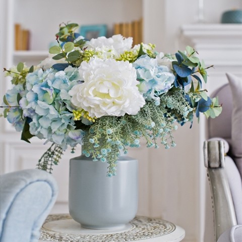 Bring floral arrangements on to console tables, sideboards or kitchen tables to brighten up a space or use a floor standing plant to make a statement in a room, break up plain solid walls or fill an unused area.