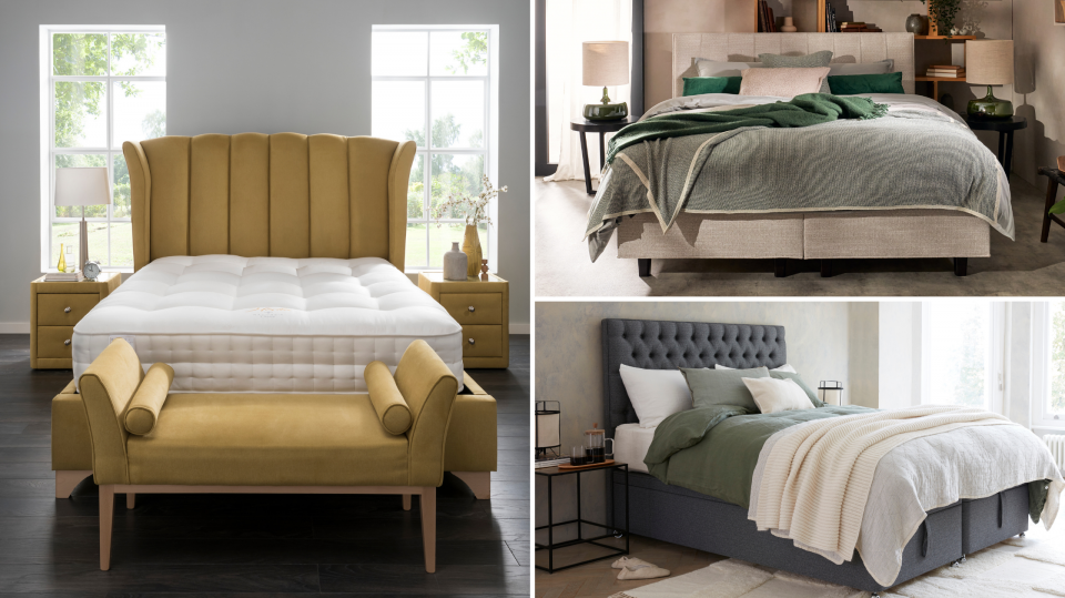 Consider whether you’d prefer just a headboard, or a complete bed frame. There are pros and cons to both. If you opt for headboard only you can update it later without having to change your bedstead. If you buy an upholstered bedstead the sides and foot of the bed base will co-ordinate with the headboard.