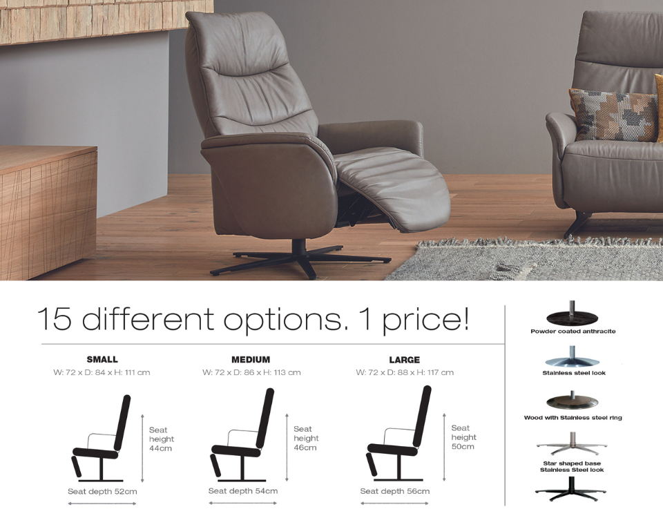 The Himolla Azure Reclining Chair is available in 15 different options all with one price.
