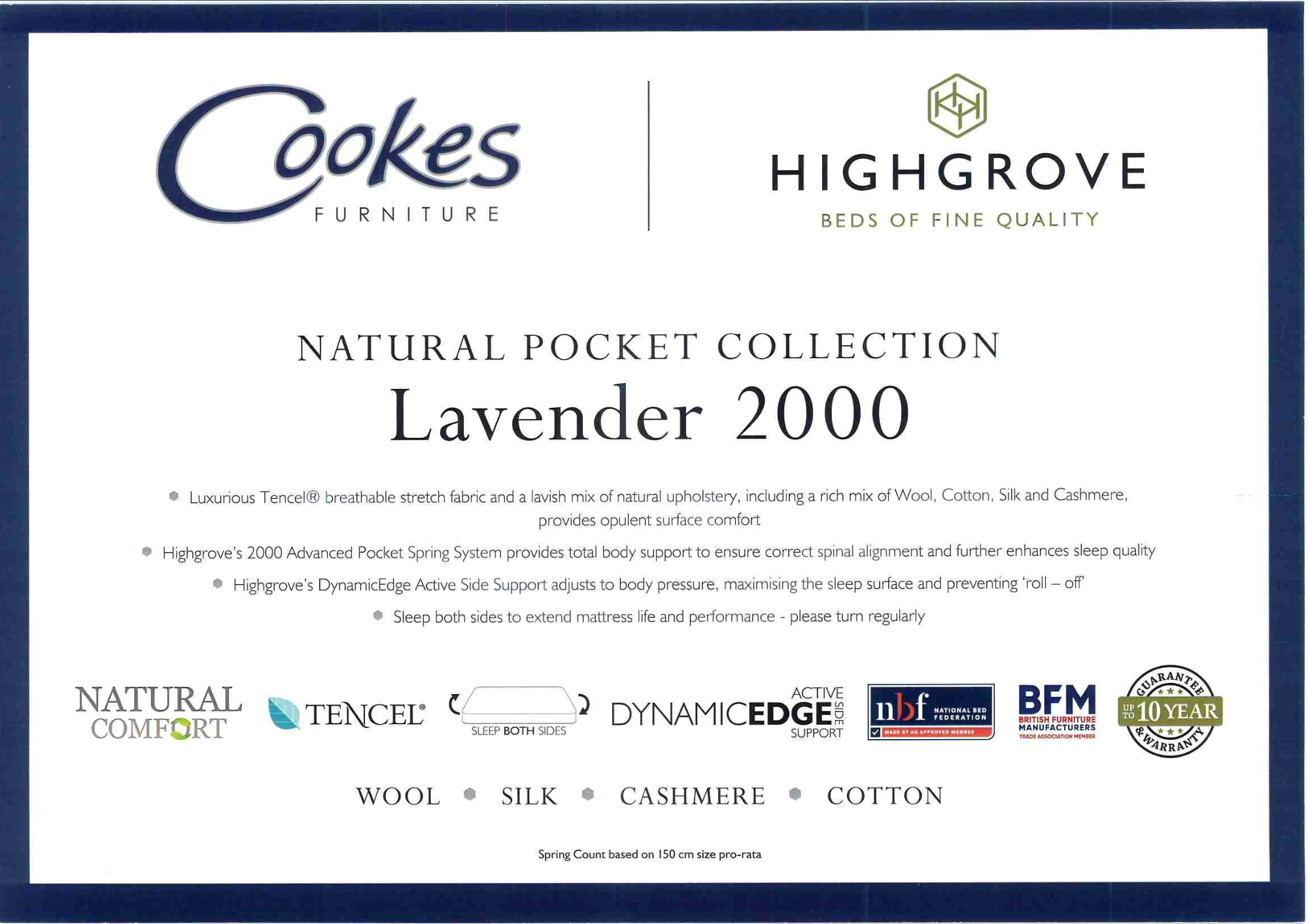 Perfect for those seeking a balance of natural comfort, breathability, and reliable support, the Lavender 2000 is an excellent choice for a more refreshing and restorative night’s sleep.