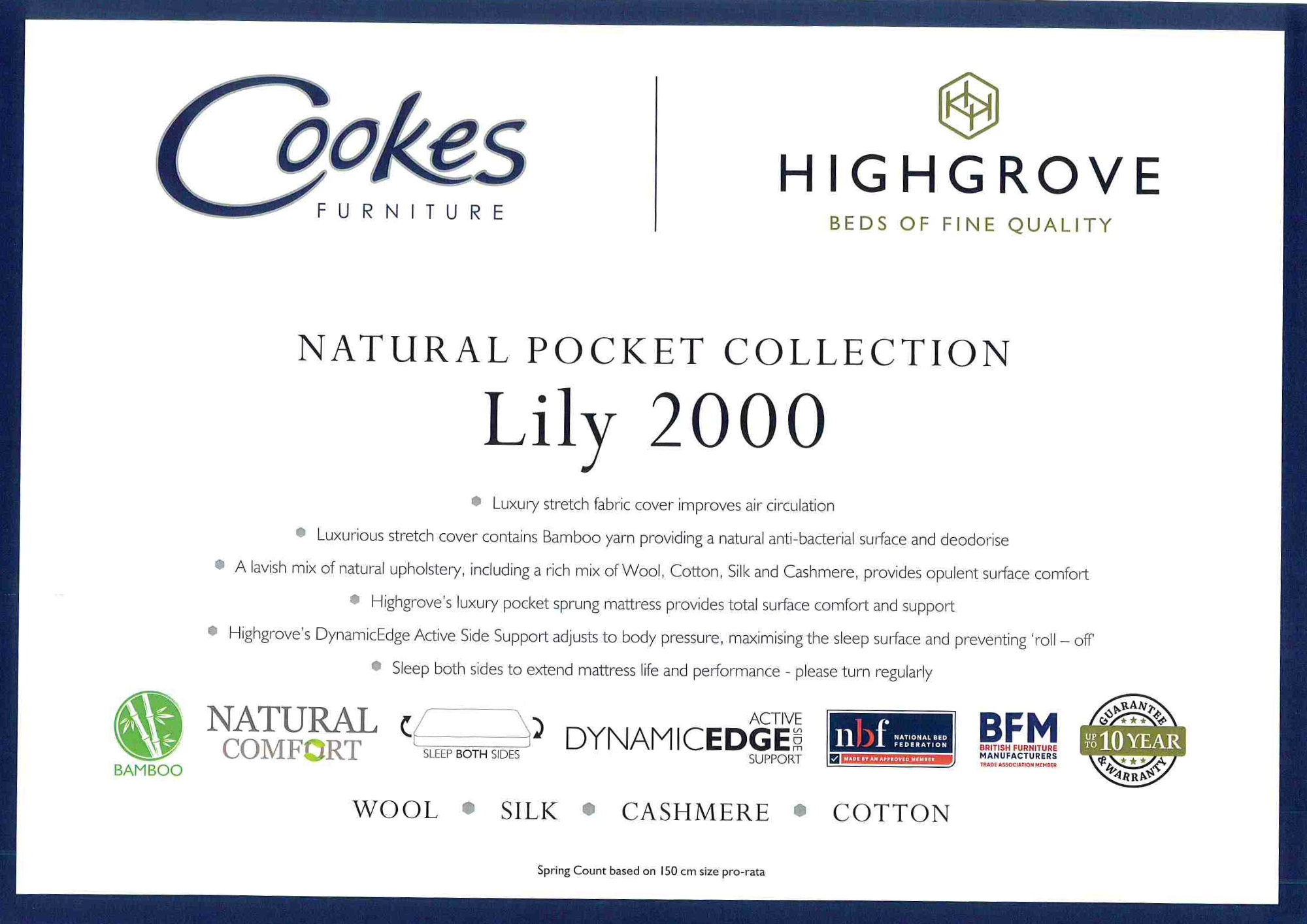 The Lily 2000 Pocket Sprung Mattress offers a perfect blend of natural comfort, breathability, and supportive sleep technology. Part of Highgrove’s Natural Pocket Collection, this mattress is designed to provide a luxurious and refreshing sleep experience night after night.